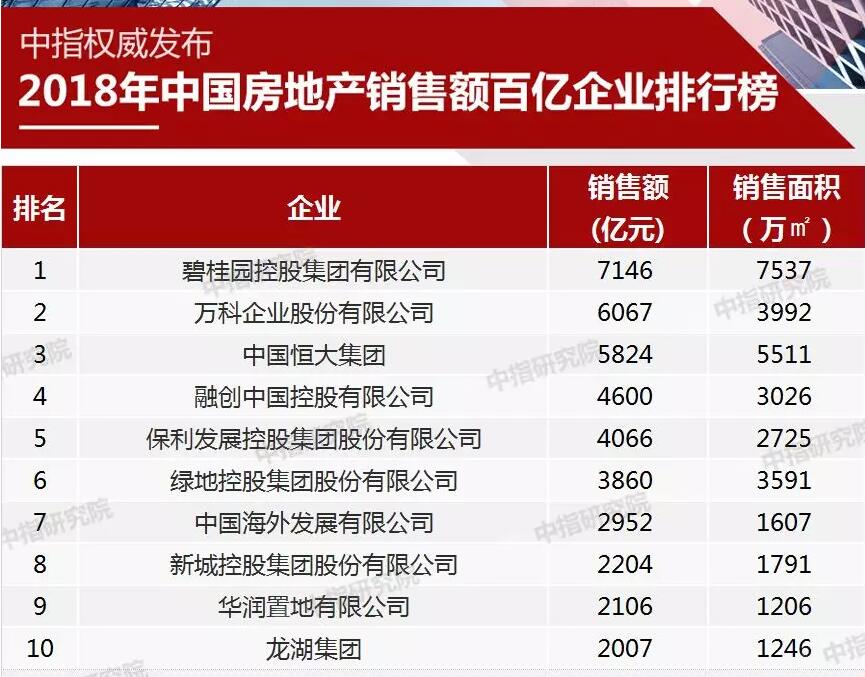 深圳新聞網(wǎng)2019年1月1日訊(記者 何暢)近日,中指研究院發(fā)布2018年中國房地產(chǎn)銷售額百億企業(yè)排行榜,2018年銷售金額TOP100的位次爭奪終于落下帷幕,碧桂園以7000億元再次位列榜首,萬科和恒大分居亞軍、季軍。