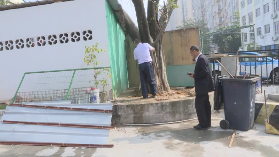 記者陪同愛心人士來到這個(gè)場站內(nèi)時(shí),看到原本在一顆樹旁邊的犬舍,已經(jīng)被拆除了,犬只也不知去向,只剩下一只小母狗“花花”。愛心人士懷疑,這些犬只,是不是也被處理掉了。