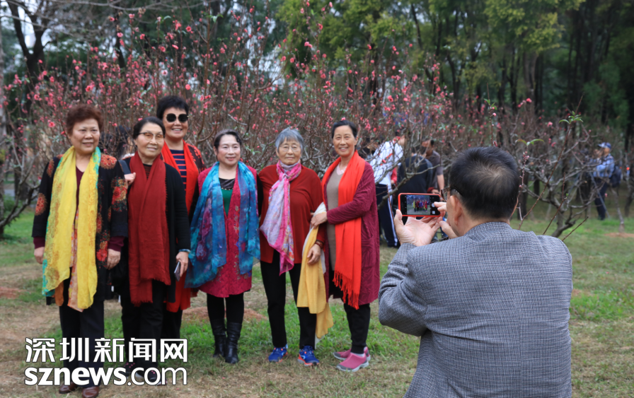 市民在桃花林與桃花合影留念