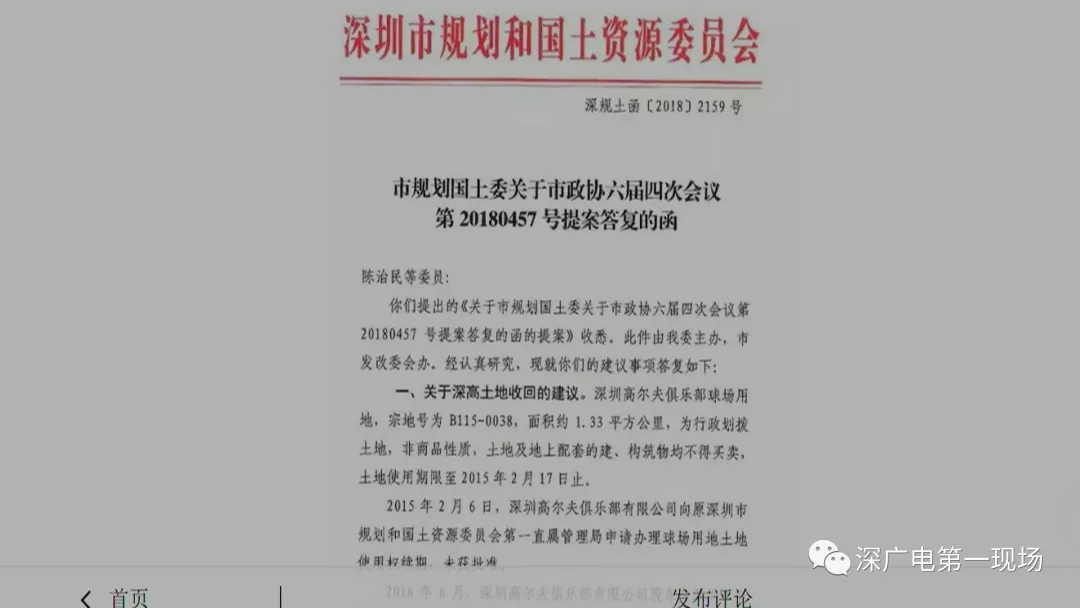 深圳高爾夫俱樂部球場(chǎng)用地的所有權(quán)問題,一直備受關(guān)注。曾有委員提出提案,將高爾夫球場(chǎng)收回作為公共公園,這一提案在2018年也得到過市規(guī)劃國土委的回復(fù)。