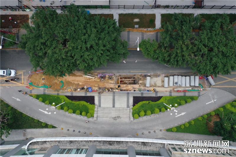 福田區(qū)僑鄉(xiāng)路道路施工現(xiàn)場航拍