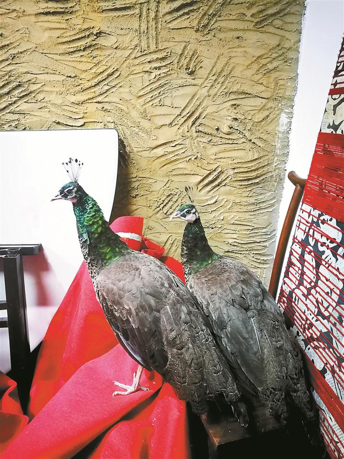 接到報料后,深晚記者聯(lián)系上蔣先生并來到現(xiàn)場。該公司位于南山荷蘭花卉小鎮(zhèn)內(nèi),發(fā)現(xiàn)孔雀的露臺就在公司二樓,因為擔(dān)心孔雀再次走失,蔣先生將其安置在雜物間。記者看到,兩只孔雀體型較大且通體以灰褐色為主,頭部花紋黑白相間,羽冠和脖頸是鮮艷的藍綠色。