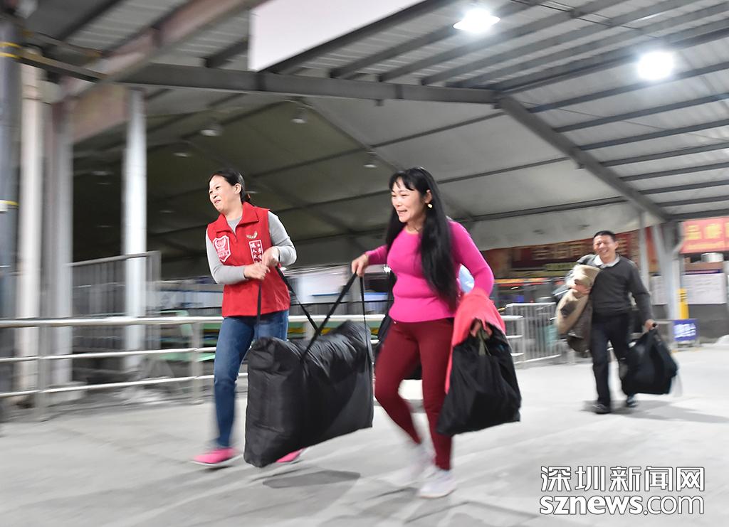 深圳義工在現(xiàn)場協(xié)助乘客搬運行李