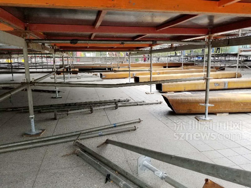 由于市民中心南廣場(chǎng)下為地下車(chē)庫(kù),為了安全起見(jiàn),舞臺(tái)以“遇河架橋”的思路進(jìn)行搭建(王啟文供圖)
