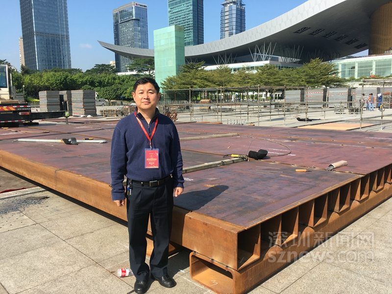 深圳建筑設(shè)計總院有限公司總工程師王啟文在舞臺搭建施工現(xiàn)場(王啟文本人提供)
