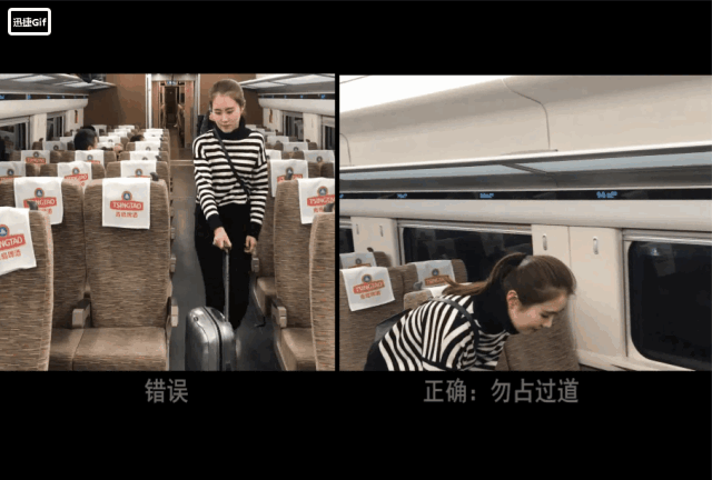 列車上,行李應擺放好在行李架上,請勿擺放在過道,影響正常使用。