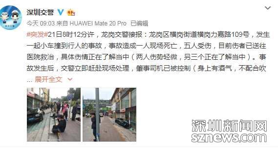1月21日,龍崗一道路發(fā)生車禍:一輛跑車沖向人行道致1死5傷