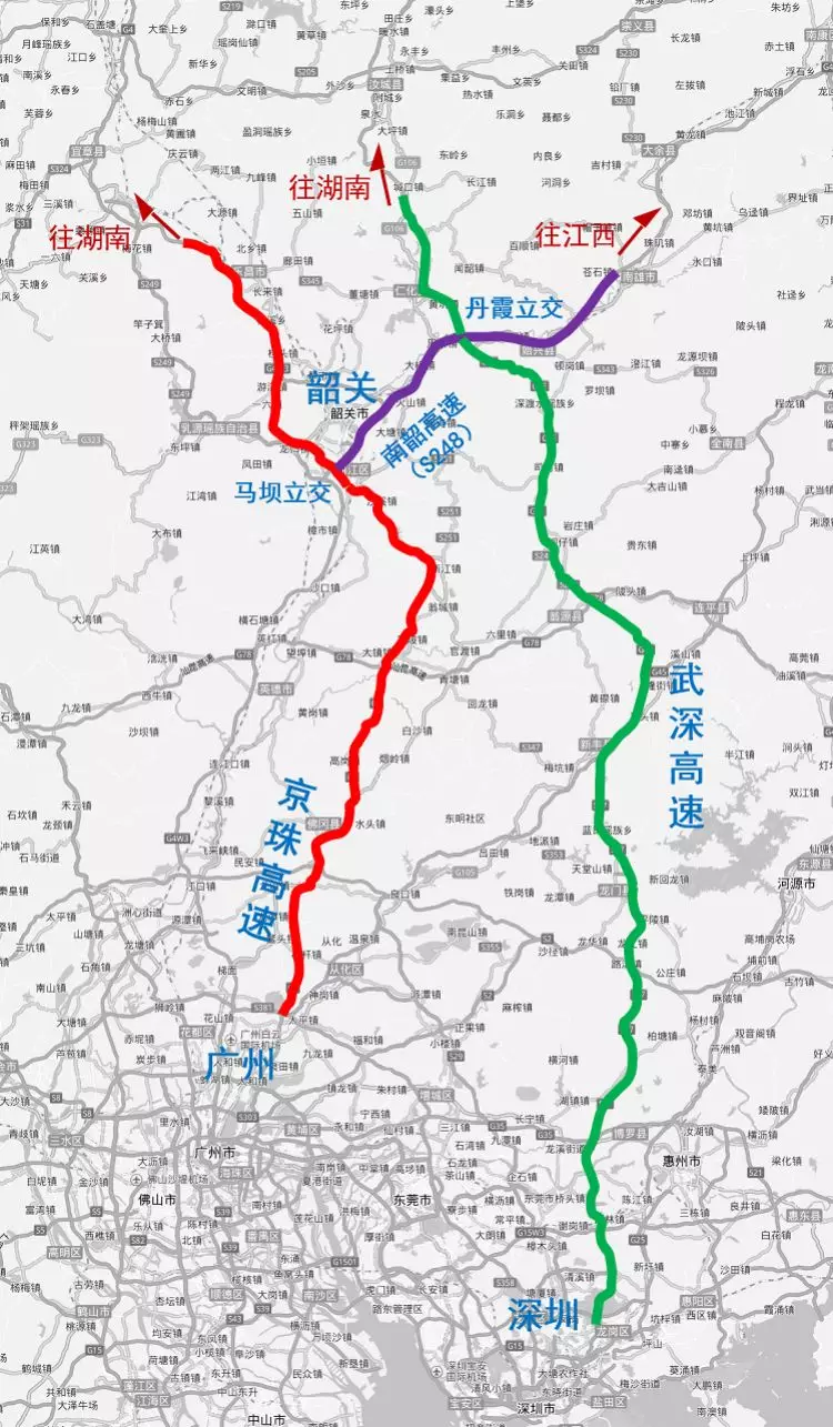 建議3:沿G4京港澳高速北上后,在韶關(guān)馬壩樞紐轉(zhuǎn)南韶高速往東,至丹霞樞紐進(jìn)0入仁新高速,經(jīng)九龍江省際收費(fèi)站進(jìn)入湖南,沿S11平汝高速北上。該線路是前往長(zhǎng)株潭城市群、武漢、南昌等地的最佳路徑。