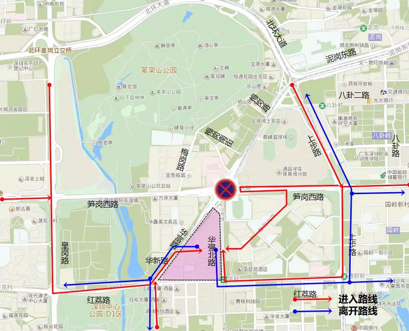 車行交通調(diào)整為:紅荔路 -上步路 -筍崗西路;上步路 -筍崗西路。