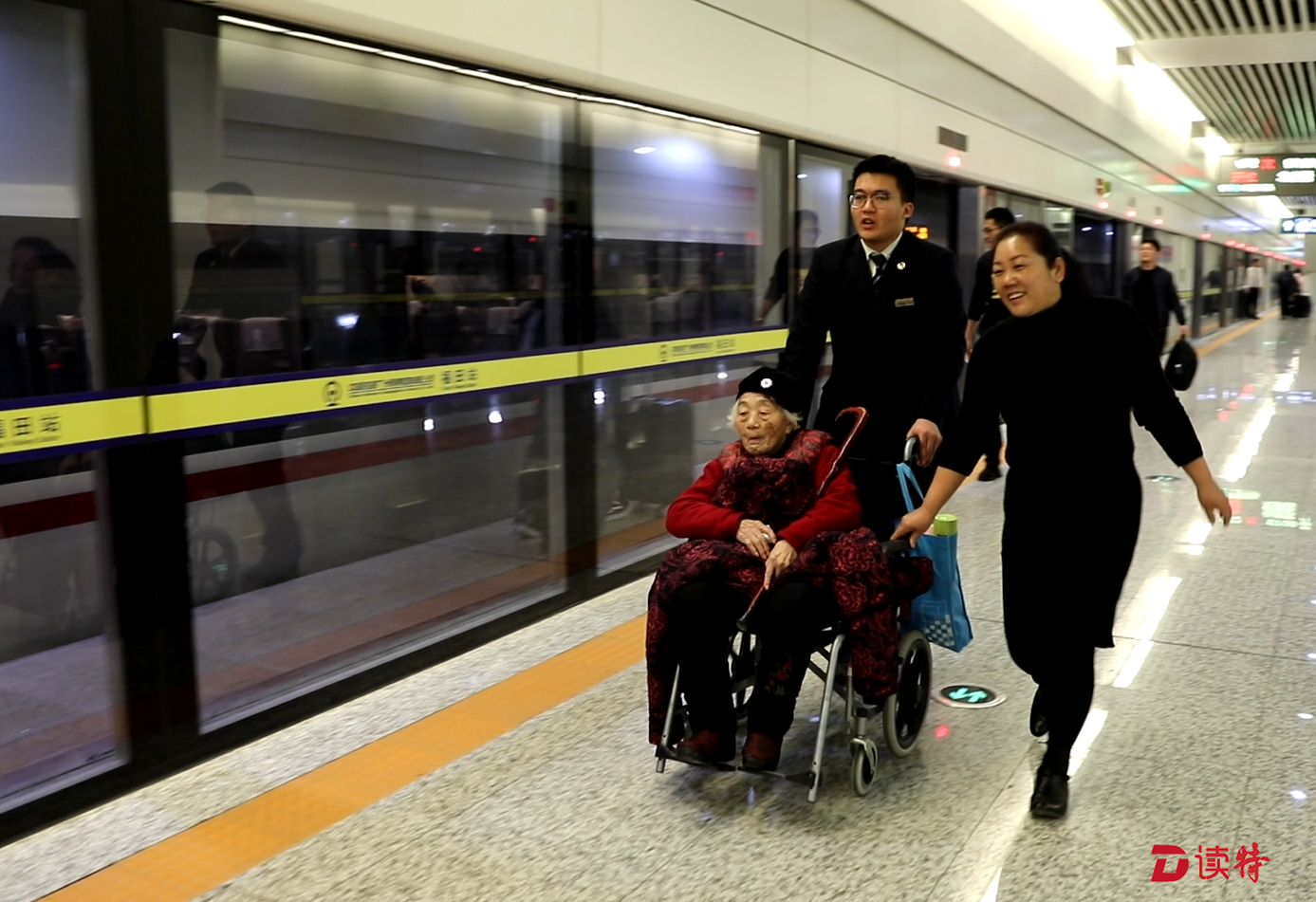 前兩天,站里剛剛接到過一位返鄉(xiāng)老人對李樹森的表揚(yáng)。70歲的旅客張爺爺帶著坐在輪椅上90多歲的老母親,在福田高鐵站坐高鐵回駐馬店老家過年,由于年紀(jì)太大又是第一次來到這里坐車,因此特別不知所措?!霸诤蜍囀遥±钜豢吹轿覀兙椭鲃?dòng)上來幫忙了,又是推輪椅又是拿行李,怕我們被擠到摔倒,帶我們提前走特殊通道檢票,一路把我們送上車。到了車上,他還專門叫來乘務(wù)員,仔細(xì)交代我倆的情況。如果沒有他,我們兩個(gè)老人家,這次都不知道能不能順利到家呢!”張爺爺在電話里感激地說道。