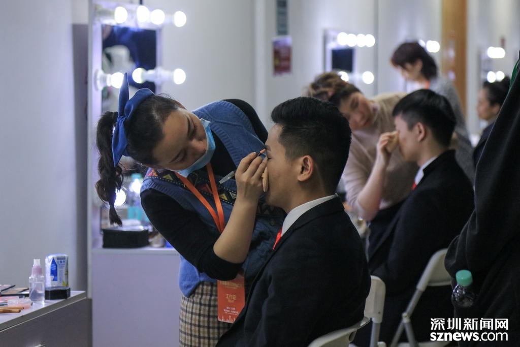 工作人員正在為演職人員化妝