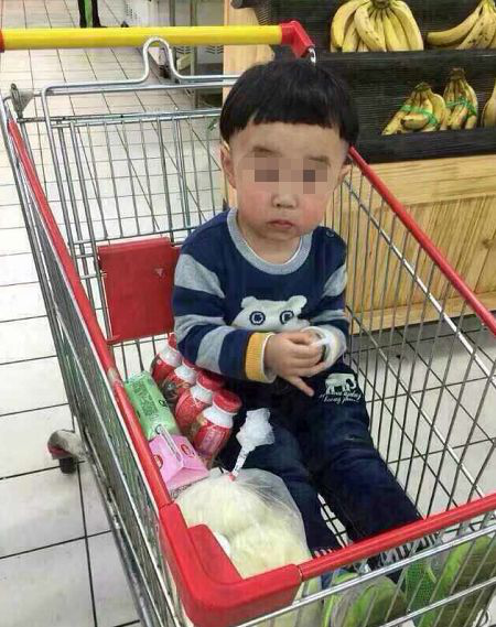 消息配發(fā)的圖片顯示,一名年幼的兒童坐在超市的購物車里,一臉天真爛漫的模樣。圖片中的兒童指稱是被拐的女孩。