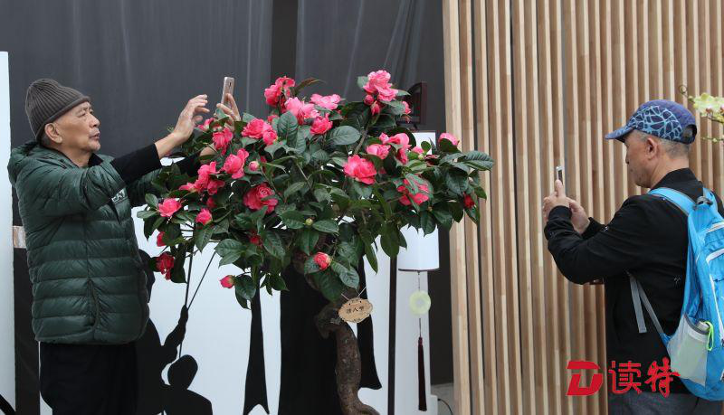 在室外展區(qū),從公園南門沿著前往主展區(qū)的園路,富有中式設(shè)計風(fēng)格的展板依次展出與茶花相關(guān)的繪畫和書法作品,以及造型優(yōu)美、品種奇特的茶花,形成集裝飾、展示、科普于一體的茶花文化展示長廊;位于花卉館附近的"新茶弄色"則利用茶花盆景和切花藝術(shù)之美,吸引游客的觀賞興趣,不少游客紛紛駐足拍照;位于粵清園的"茶顏悅色"景點,各色山茶花品種點綴在清爽雅致的嶺南園林中,凸顯嶺南園林藝術(shù)的精致,也展現(xiàn)了山茶花色彩多樣的婀娜魅力;位于茶花園的"茶花物語"則以原有景觀設(shè)計為基礎(chǔ),以日式造景講訴東方茶花之美,為游人打造了韻味濃厚的東方式茶花展示園。