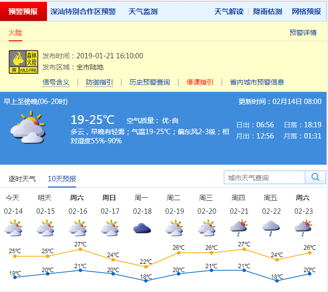 記者從深圳市氣象局了解到,14日深圳全市多云為主,氣溫19-25℃,相對(duì)濕度70%-90%,偏東風(fēng)2-3級(jí),能見(jiàn)度8-18公里。值得一提的是,今天距離深圳平均入冬日:1月13日已經(jīng)過(guò)去一個(gè)月了,今年直接入夏的可能性越來(lái)越大。