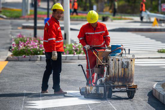 路面標線正加緊施畫。