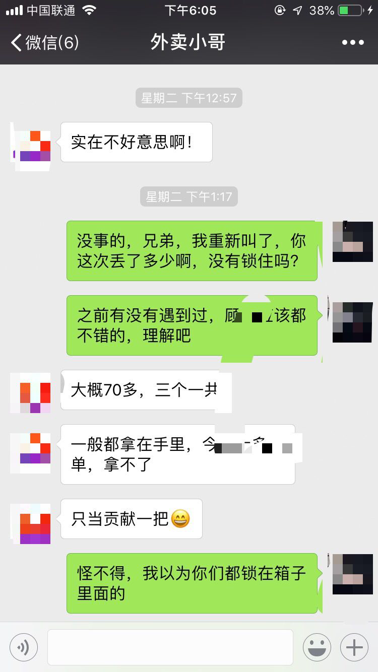 記者聯系到了當事外賣小哥顏先生。"我的電動車停在福田區(qū)文化創(chuàng)意園世紀工藝廣場那里,就三個餐沒提完,放在箱子里面,幾分鐘出來后,下樓就沒了。"據了解,三份外賣總價值約70元。外賣被偷后,顏先生立即聯系了三位顧客道歉并說明情況,并照價賠償了點餐費。"很多時候,我們都會把所有外賣都拿在手上,但那天有10多份,拿不了那么多,就當貢獻一把了。"