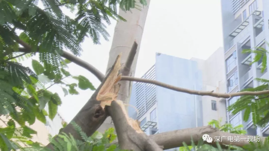 園林養(yǎng)護(hù)公司相關(guān)負(fù)責(zé)人介紹,這棵樹(shù)的樹(shù)名叫做南洋楹,記者觀(guān)察發(fā)現(xiàn),該路段種植的樹(shù)木基本都屬于這一樹(shù)種,但唯獨(dú)這一棵出現(xiàn)了樹(shù)枝折斷的情況。記者還在旁邊發(fā)現(xiàn)了一棵同樣的樹(shù),樹(shù)干已經(jīng)被折斷,劉先生說(shuō),這還是去年9月份,被臺(tái)風(fēng)山竹吹斷的。像今天這種風(fēng)平浪靜的情況下斷枝,非常少見(jiàn)。