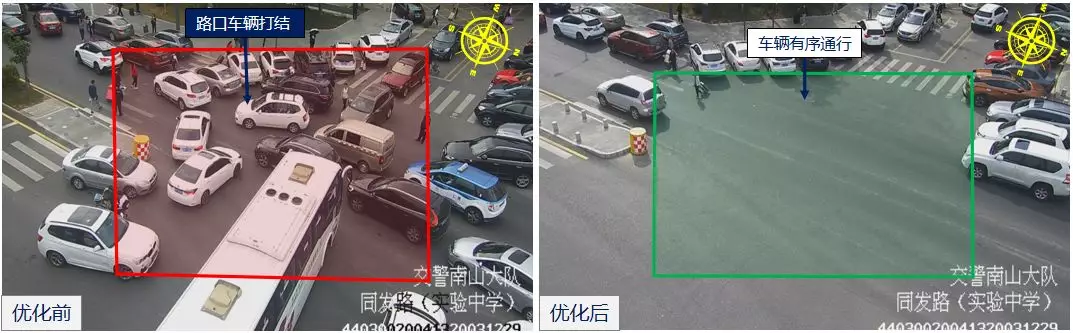 2月17日下午,接送學生至深圳實驗學校的車輛較多,大量車輛??柯愤吪抨牭群?影響車輛通行效率,導致同發(fā)/新高路口車輛溢出,深圳交警根據(jù)現(xiàn)場情況,采用步伐保持放行,優(yōu)化路口配時參數(shù)及綠信比,快速疏解同發(fā)/同沙路口北面車輛,防止同發(fā)/新高路口打結。