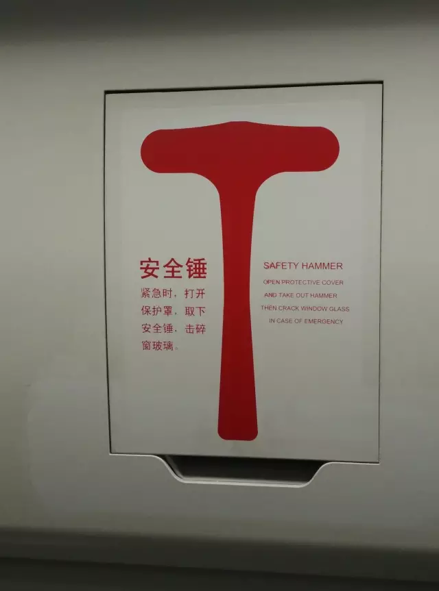 安全錘安裝于列車側(cè)頂上方的盒體內(nèi),每節(jié)車設(shè)有4個。當(dāng)列車發(fā)生緊急情況時,乘客可打開保護罩取下安全錘,用錘子擊碎窗玻璃逃生。