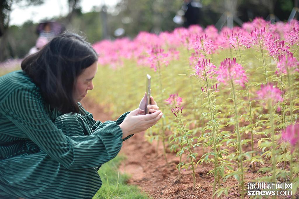 一位市民正用手機(jī)拍下眼前的醉蝶花