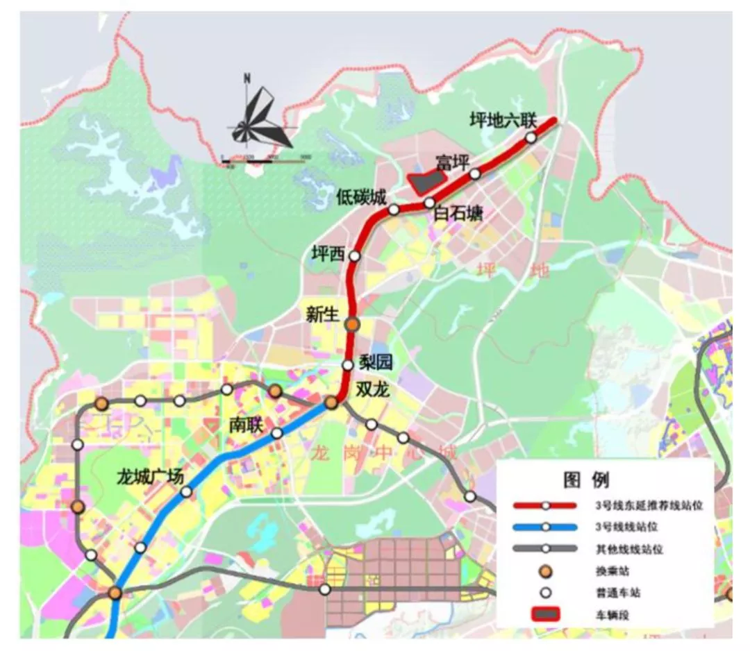 它連接后福、新生、低山、坪西、坪地、坪東以及龍崗中心等地區(qū),并通過已建成運行的3號線連接至福田中心區(qū),是聯(lián)系坪地中心與龍崗中心、橫崗中心、布吉中心、羅湖中心以及福田中心的城市軌道干線。