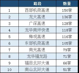 2018年接報涉及行人進(jìn)入高快速路排名前十的路段是: