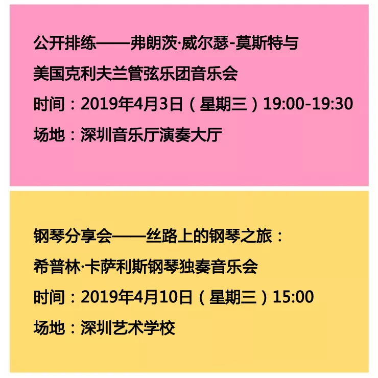主體活動星光燦爛,延展活動眾星拱月,優(yōu)惠購票、免費招募、免費參與靜等你來!參與方式可關注“深圳一帶一路音樂季”微信公共號。