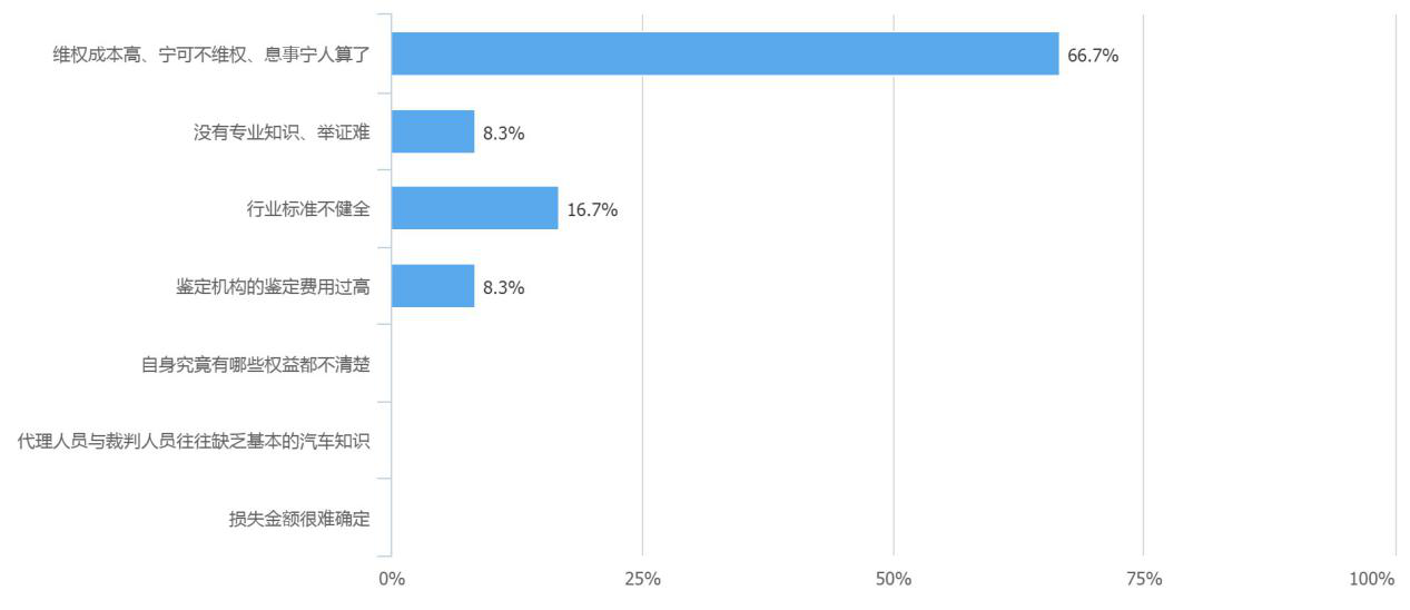 維權(quán)成本高、寧可不維權(quán)、息事寧人成為影響汽車法律維權(quán)的主要因素。
