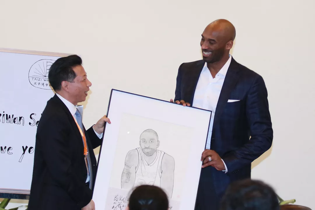 11點(diǎn)20分,科比在萬(wàn)眾期待中出現(xiàn),滿臉笑容地走下車接受太子灣學(xué)校學(xué)生的鮮花。