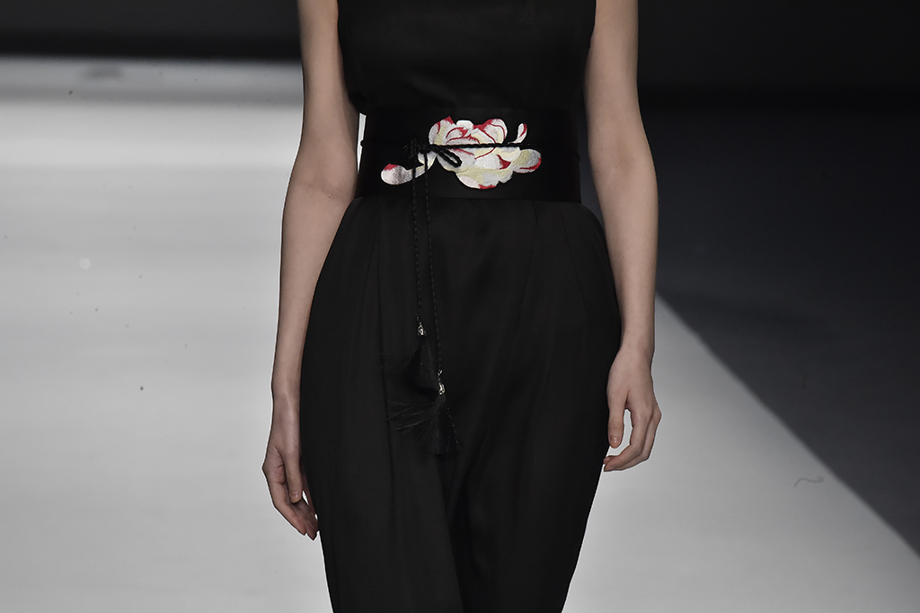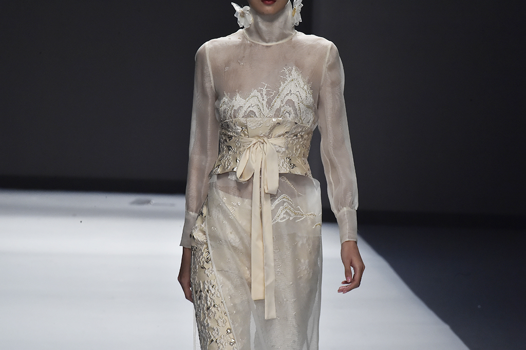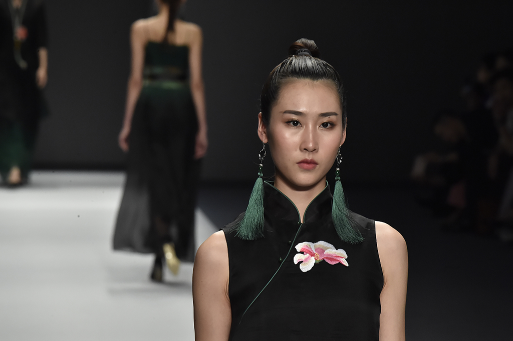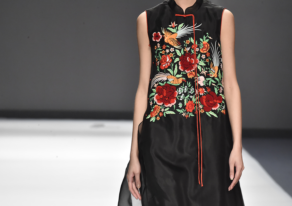 模特正在展示品牌Sunshine見(jiàn)花開(kāi)的服裝花朵作為設(shè)計(jì)的一部分凸顯東方美感