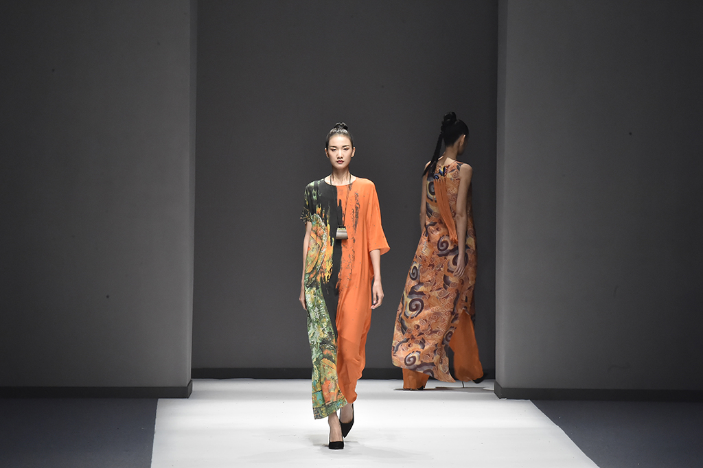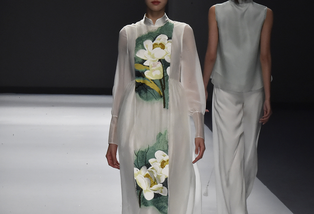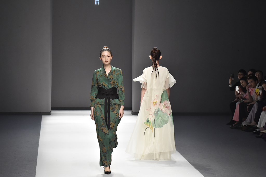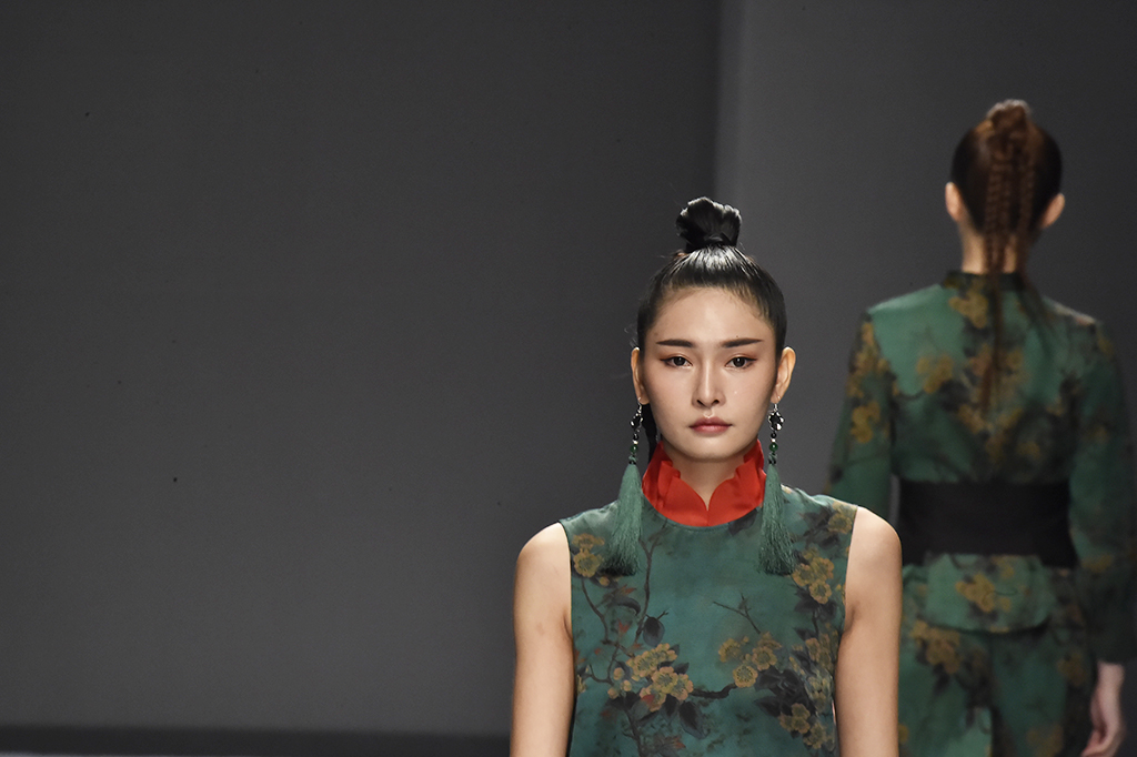 模特正在展示品牌Sunshine見(jiàn)花開(kāi)的服裝服裝凸顯東方特色