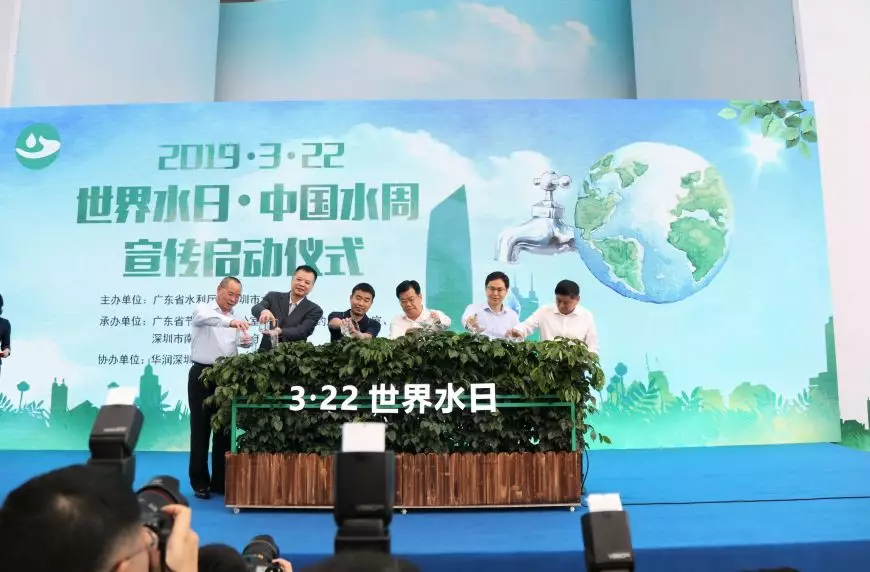 現(xiàn)場(chǎng)領(lǐng)導(dǎo)用取自于深圳灣體育中心大樹(shù)廣場(chǎng)收集回用的雨水,共同澆灌象征著綠色、希望的生命之樹(shù),來(lái)正式啟動(dòng)“世界水日”“中國(guó)水周”宣傳活動(dòng)!