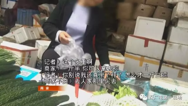 在一個(gè)攤位上,記者選購(gòu)了兩根黃瓜,商家拍著胸脯向記者打包票,一斤半,并且絕對(duì)足斤??捎浾哂帽銛y秤稱(chēng)了后發(fā)現(xiàn)少了二兩,遭到記者當(dāng)面識(shí)破,剛才還信誓旦旦的商家,瞬間翻臉了。