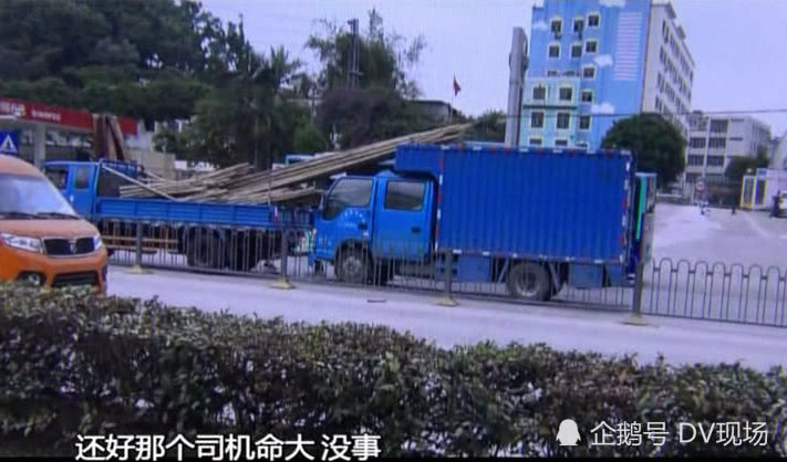 深圳一貨車發(fā)生追尾 竹竿插入駕駛室司機大難不死躲過一劫