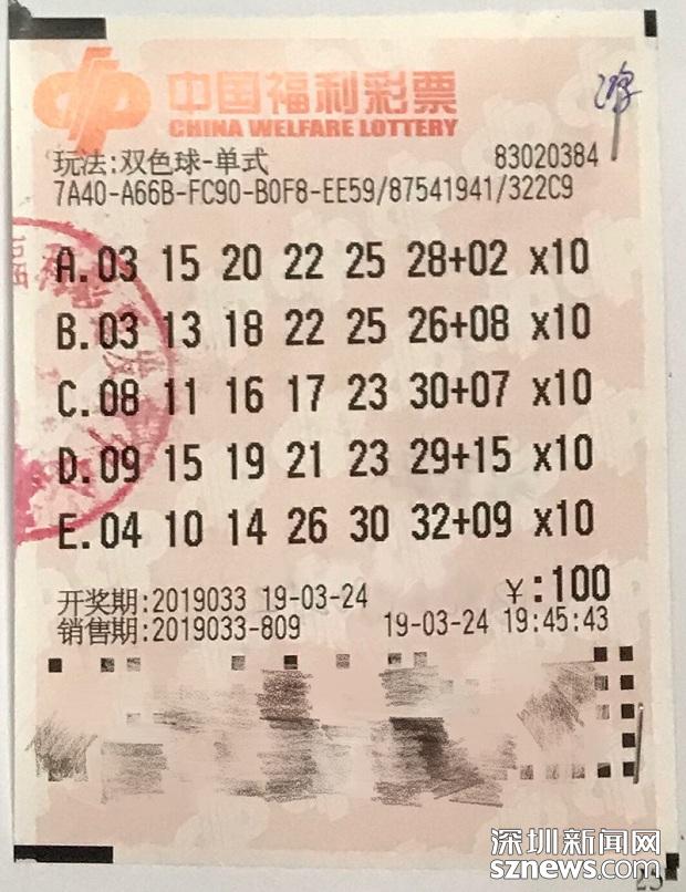 3月24日晚,中國(guó)福利彩票雙色球游戲進(jìn)行第2019033期開(kāi)獎(jiǎng)。當(dāng)期雙色球紅球號(hào)碼為09、15、19、21、23、29,藍(lán)球號(hào)碼為15。深圳彩民中出11注一等獎(jiǎng),中出的站點(diǎn)除了南山區(qū)粵海路飛馬城世界服裝貿(mào)易廣場(chǎng)c-130商鋪83020384投注站中出10注,還有1注是寶安區(qū)松崗街道平安路居樂(lè)苑10號(hào)83020476投注站中出。