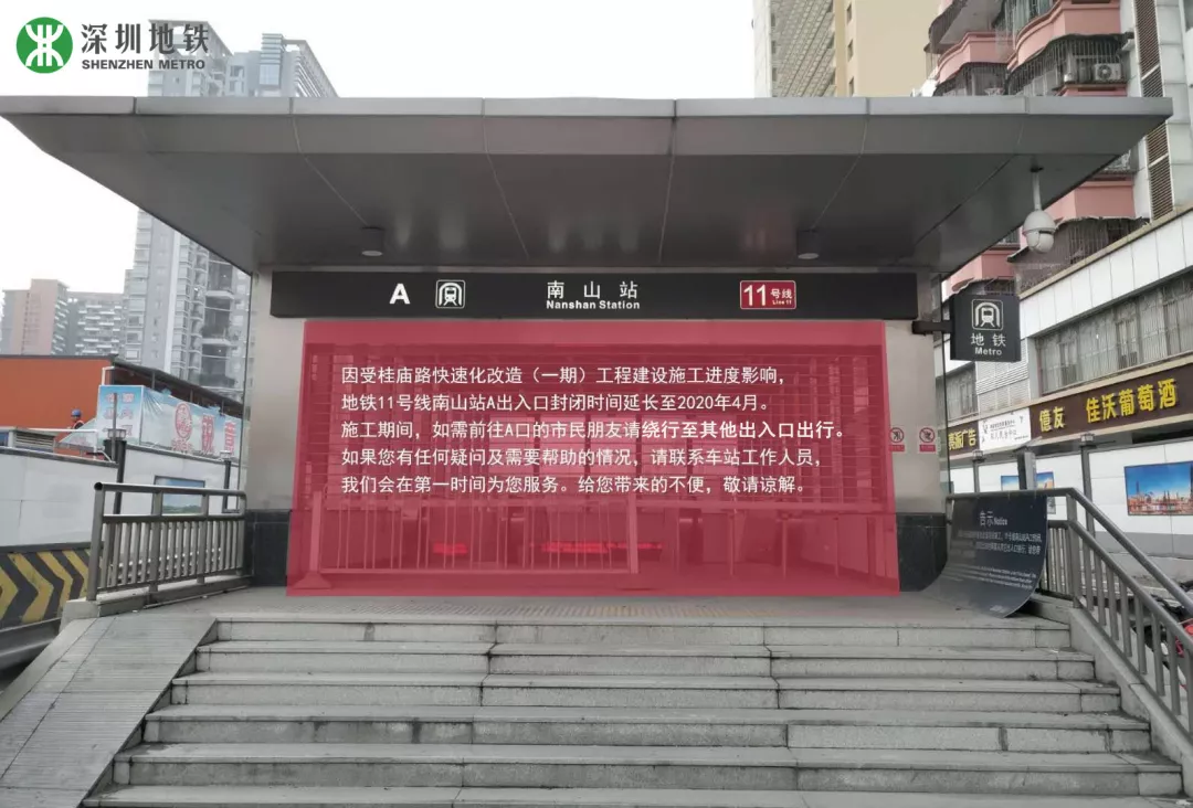 11號(hào)線南山站A出入口延長(zhǎng)封閉時(shí)間
