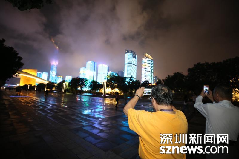 現(xiàn)場(chǎng)觀看燈光秀的市民