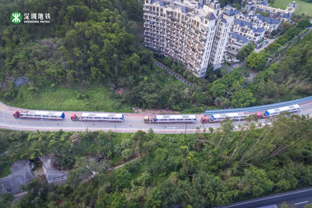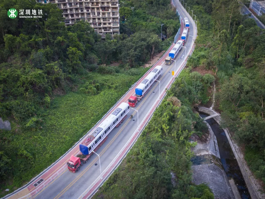 列車“乘坐”平板卡車從中車株機廠起運,經過近1000公里的鐵公路運輸,最后抵達深圳深云車輛段。