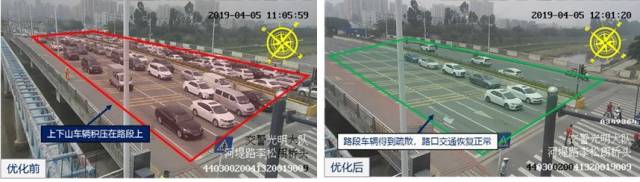 深圳交警采用遠(yuǎn)程步控及路面手動(dòng)控制及時(shí)疏散積壓排隊(duì)車(chē)輛,約中午12點(diǎn)路面車(chē)流量逐漸減少,路口交通恢復(fù)正常。