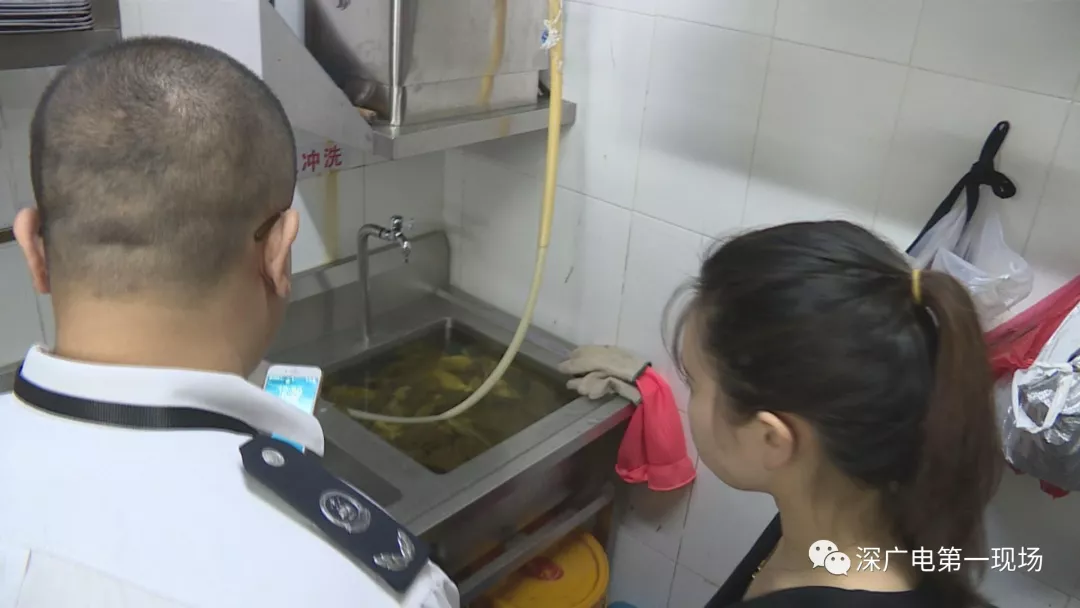 中午12點(diǎn),記者隨同市監(jiān)寶安局沙井所的執(zhí)法人員對(duì)這家蟹王子餐廳進(jìn)行突擊檢查。才剛進(jìn)后廚沒(méi)多久。執(zhí)法人員就發(fā)現(xiàn)。這做酸菜魚(yú)的酸菜。居然泡在了洗碗池!