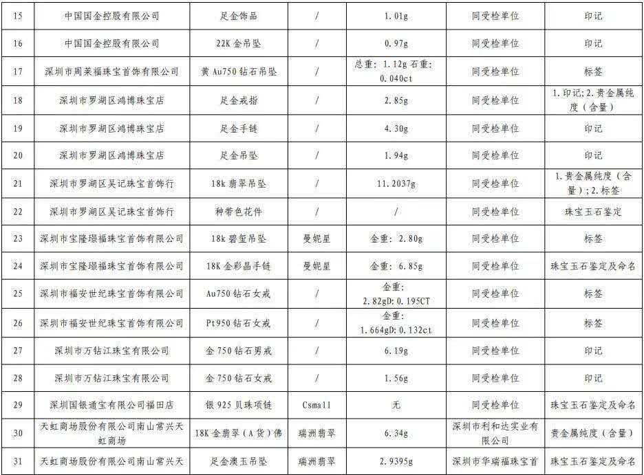 原標(biāo)題:深圳最新抽檢珠寶抽檢結(jié)果公布,不合格產(chǎn)品發(fā)現(xiàn)率16.3%