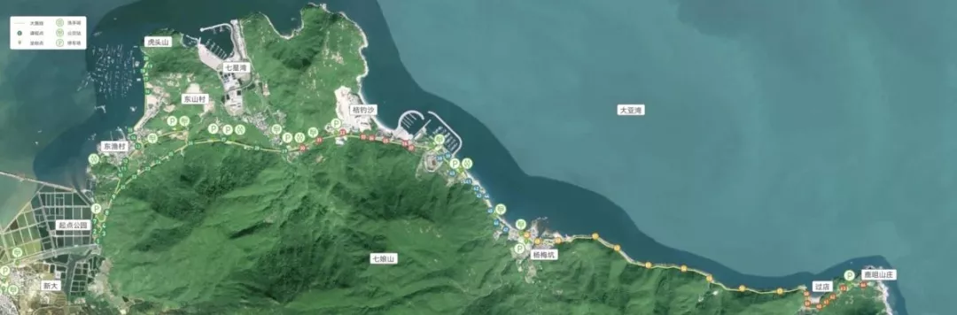 在綠道導引地圖上記者看到,綠道橫跨新大、東漁、東山三個社區(qū),由西向東依次經(jīng)過珍珠島、東山碼頭、七星灣游艇會、桔釣沙海灣、新體育海洋運動中心、浪騎游艇會、楊梅坑景區(qū),同時還經(jīng)過聞名遐邇的高嶺古村和兩個承傳東山漁歌、東漁天后誕非物質(zhì)文化遺產(chǎn)的疍家漁民聚集區(qū)。