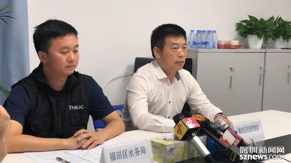 4月12日上午10時,福田區(qū)在鳳塘河口水質(zhì)凈化工程的現(xiàn)場召開新聞發(fā)布會。福田區(qū)應(yīng)急管理局副局長劉漢元、福田區(qū)水務(wù)局副局長尹學(xué)康通報搜救情況。