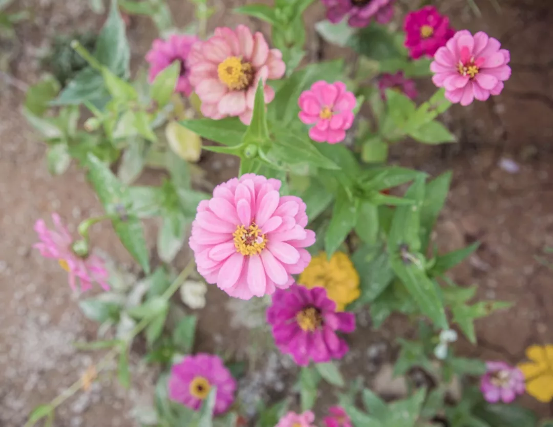 菊類花多種多樣,難以辨認(rèn),但百日菊卻很特別,它的花瓣從花心向外一輪一輪延展,既像水面漣漪,又似樹木年輪。