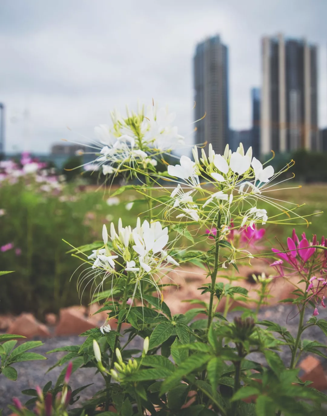 乍一看是不是有點像彼岸花?不過它倆卻算不上什么親戚。醉蝶花盛開時,總狀花序形成一個豐滿的花球,朵朵小花猶如翩翩起舞的蝴蝶,靈動迷人。
