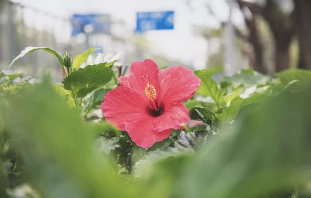 如火般熱烈的勒杜鵑,鋪滿了四公里長的機場南路,修長的枝丫向陽舒展,在微風(fēng)中搖曳。勒杜鵑一年兩次花期,每年的1、2月是開得最熱烈的時候。