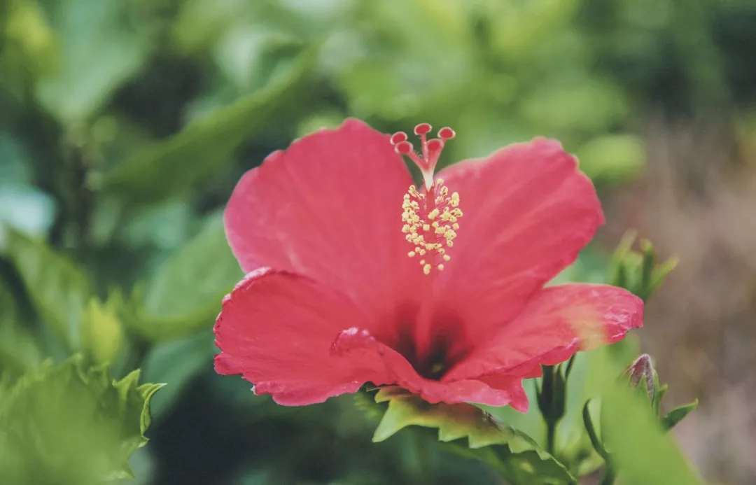 朱槿,也稱扶桑,是常見的觀賞性植物,在溫暖的南方,四季都有花開,紅艷艷的花朵掛在枝頭,非常惹人喜愛。因為花朵多數(shù)大而紅,所以大家還給它起了一個淺顯易懂的俗名——大紅花。