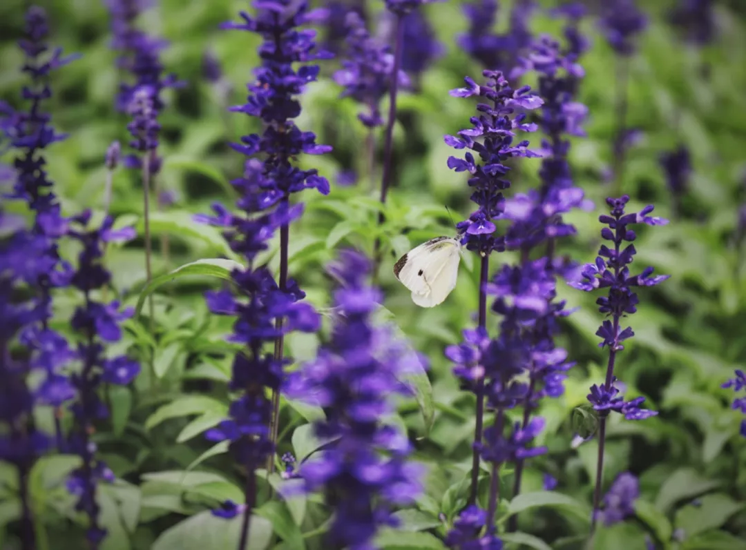 藍花鼠尾草清幽典雅,適合成片種植于花壇作為景觀,在寶安四季公園內(nèi)就有許多。
