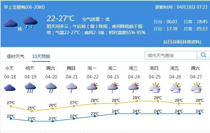 據(jù)深圳天氣,18-20日深圳將迎來新一輪暴雨過程:18日陰天轉(zhuǎn)小到中雨局部大雨伴有短時雷暴,氣溫22-27℃,19-20日有中到大雨局部暴雨并伴有雷暴和短時大風;21日降雨減弱;22-23日有短時陣雨,部分時間可見陽光。
