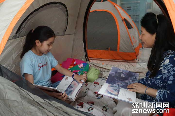 有的小朋友最期待的就是搭帳篷環(huán)節(jié),因?yàn)橛H手搭建一個(gè)自己的小窩感覺特別有趣。而有的小朋友最喜歡的是能夠在帳篷里和媽媽一起看新書。這些新書,就是主辦方深圳少年兒童圖書館送給小讀者的另一份閱讀好禮,館長宋衛(wèi)和小作家陳鵬宇、文字作家真真一起,親手給小讀者免費(fèi)送上《蛇王》、《我們的一天》和《奇想文庫》等童書。